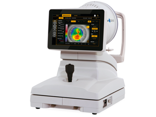 We use the Topcon CA-800 Corneal Analyzer to perform detailed corneal topography—a non-invasive scan that maps the shape and curvature of the cornea, the clear front surface of the eye. This advanced imaging helps us detect even subtle irregularities in the cornea and is essential for diagnosing and managing conditions such as keratoconus, irregular astigmatism, and corneal scars.